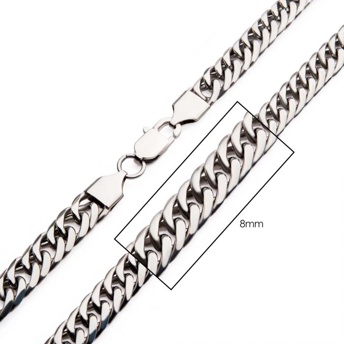 Designed with intention, the pendant measures 28mm in width and 48mm in height, making it an ideal size for a statement look without being overpowering. Its large structure provides a substantial presence around the neck, which pairs seamlessly with the sturdy black box chain. The chain measures 24 inches in length, offering a generous drop that allows the cross pendant to rest comfortably on the chest, decluttering the neckline while still capturing attention.