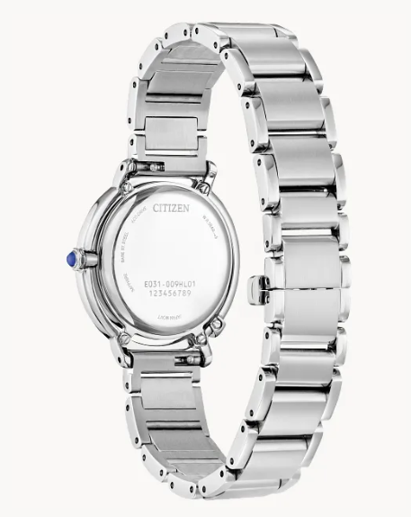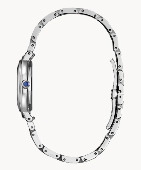 Classic lines and hints of romance make this newest piece to our women’s collection, the Citizen L Arcly, a glamorous addition of sustainable luxury. With a design inspired and celebrating the 10th anniversary of the first Citizen “Sunrise,” the distinctive silver-tone stainless steel timepiece is a charming accent on the wrist that’s perfect for everyday wear. Sleek lines define the watch's 31.2mm silhouette, with a subtle crown and small diamond accent adding to its captivatingly delicate look; an interchangeable deep red apple leather strap adds to its daily versatility. On its deep red dial, applied markers and sharp hands indicate the time in style, keeping the attention on the pure aestheticism of the timepiece. Sustainably powered by any light with our proprietary Eco-Drive technology that never needs a battery, this elegant women’s watch is the perfect addition to any outfit. Water resistant to 50 meters. Caliber E031. 31.2mm