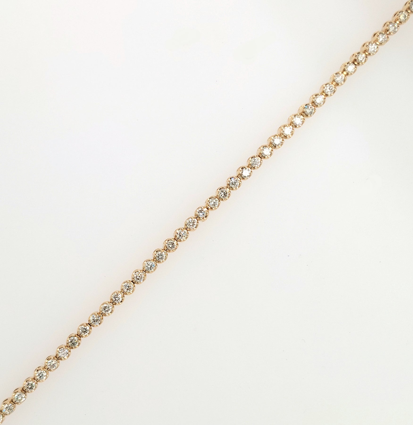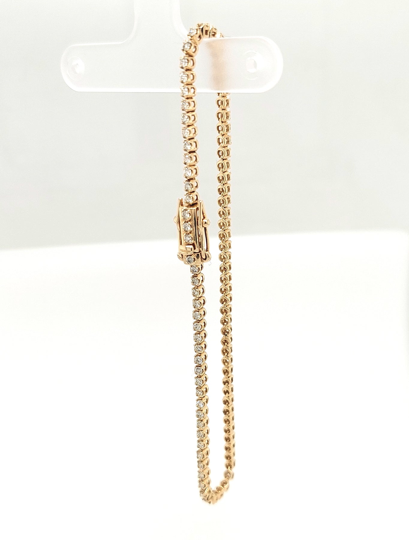 The highlight of this diamond tennis bracelet is undoubtedly its breathtaking diamonds. Adorning the piece are round brilliant-cut diamonds, totaling an impressive 1.00 carat in weight. Each diamond is carefully selected for its exceptional quality, featuring clarity grades of VS1-SI1 and a color range of H-I. These attributes ensure that the diamonds sparkle with mesmerizing fire and brilliance, capturing the light from every angle and illuminating your wrist with an enchanting glow.Elegant and Versatile – Perfect for Any Occasion