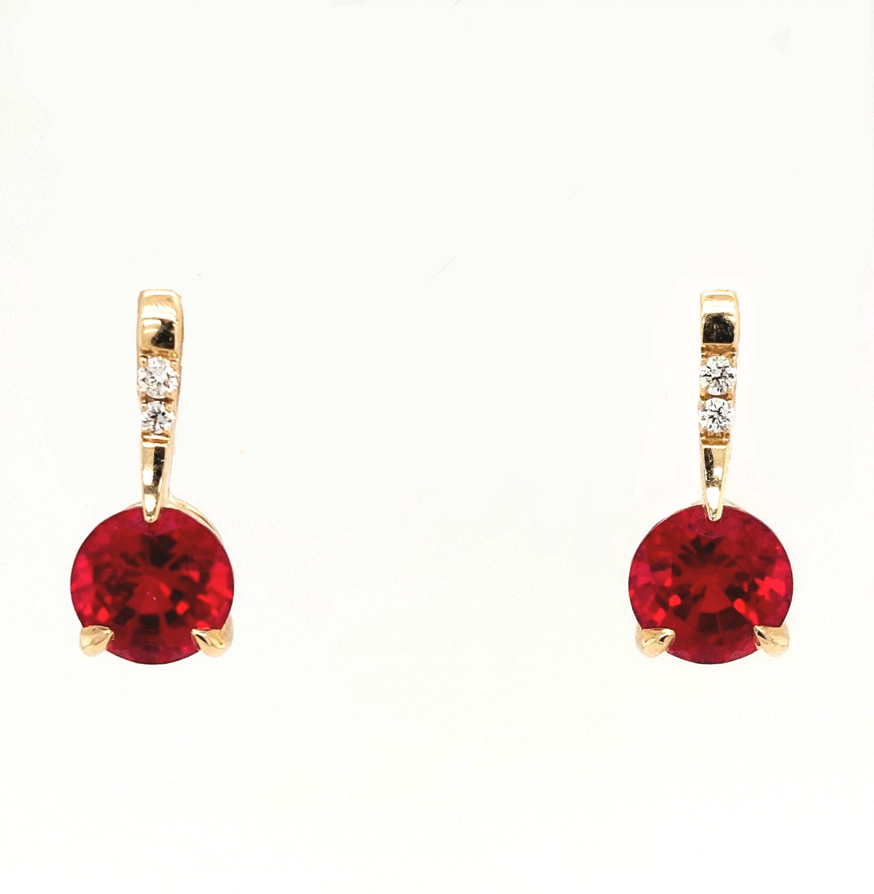 Crafted from luxurious 14K yellow gold, the band of the ring perfectly complements the fiery tones of the ruby. The golden hue of the metal exudes warmth and sophistication, providing a striking backdrop for the rich centerpiece. Durable and timeless, 14K gold is a popular choice for fine jewelry, offering both beauty and longevity. The combination of yellow gold and vibrant gemstones makes this ring a standout accessory that blends classic charm with modern elegance.Delicate Diamond Accents for Added Brilliance