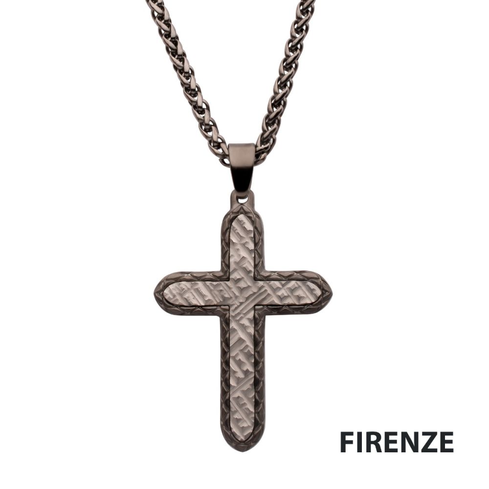 Black Plated CroSS Pendant with Matte Black Round Wheat Chain