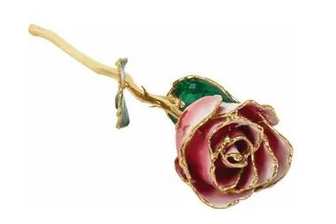Lacquered Frozen White & Red Rose with 24K Gold Trim